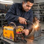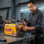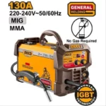 Poste à souder INGCO FC13018 – 130A, double fonction MIG (sans gaz, fil fourré) et MMA (électrode). Compact, léger, idéal pour débutants et réparations occasionnelles.